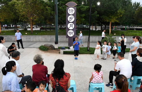 在河南鞏義一處公園內,孩子們在進行詩會(6月19日攝)。新華社記者 李安 攝