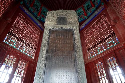 嘉應(yīng)觀始建于1723年,是雍正為了紀(jì)念在武陟修壩堵口、祭祀河神、封賞治河功臣而建造的淮黃諸河龍王廟,建筑布局效仿故宮,集宮、廟、衙署為一體。觀內(nèi)有雍正親自撰文并書寫的銅碑,立在一河蛟身上,意在鎮(zhèn)惡。