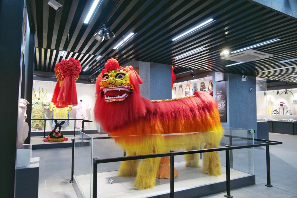 在另一側(cè)的展示窗,記者看到了大頭娃娃展品。大頭娃娃也是一種傳統(tǒng)民俗道具?!瓣P(guān)于大頭娃娃,民間有很多吉祥的說法。比如,戴上大頭娃娃后,莊稼豐收,人民生活幸福安康?!敝v解員說。