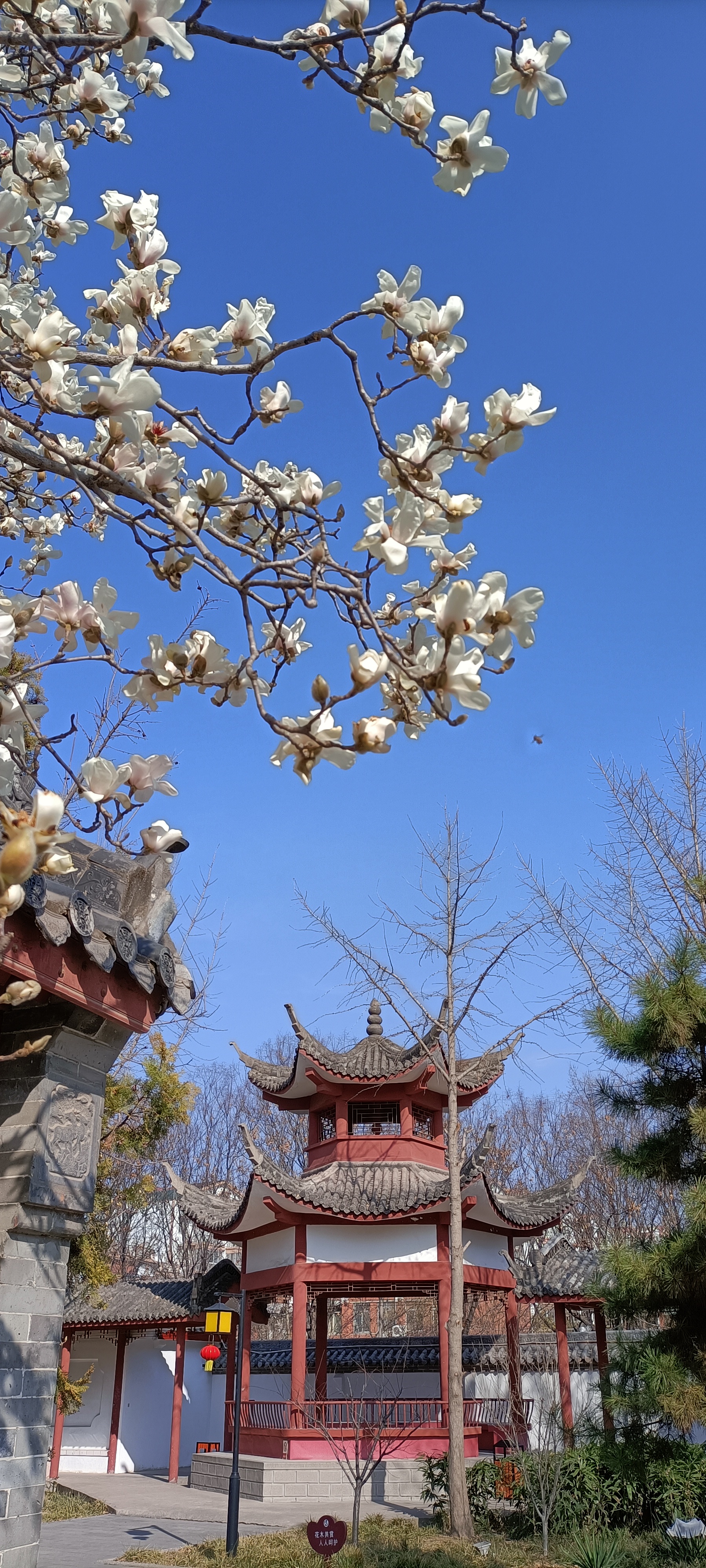 河南省許昌市塔文化博物館里的玉蘭花樹(shù)也紛紛開(kāi)滿了花趕趟兒。潔白粉嫩的白玉蘭花花香四溢,猶如美的使者,春的精靈,為人們帶來(lái)美的享受、春的味道。記者 王嬋 通訊員 王陸川 文/圖
