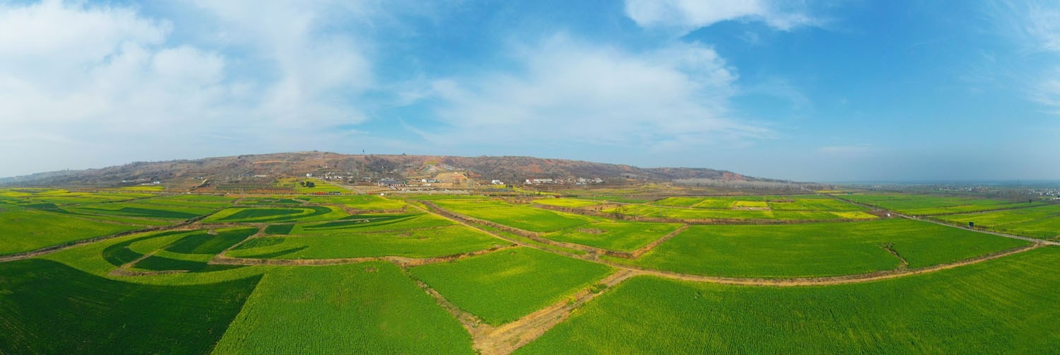航拍襄城縣首山腳下的油菜花海。