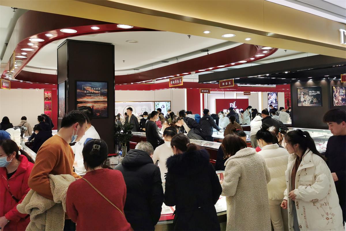 2月9日,市區(qū)一商場(chǎng)金飾專柜前,不少顧客前來(lái)選購(gòu)首飾用品。當(dāng)前,我市經(jīng)濟(jì)運(yùn)行態(tài)勢(shì)向好,市場(chǎng)消費(fèi)需求逐步回升。 本報(bào)記者 喬利峰 攝