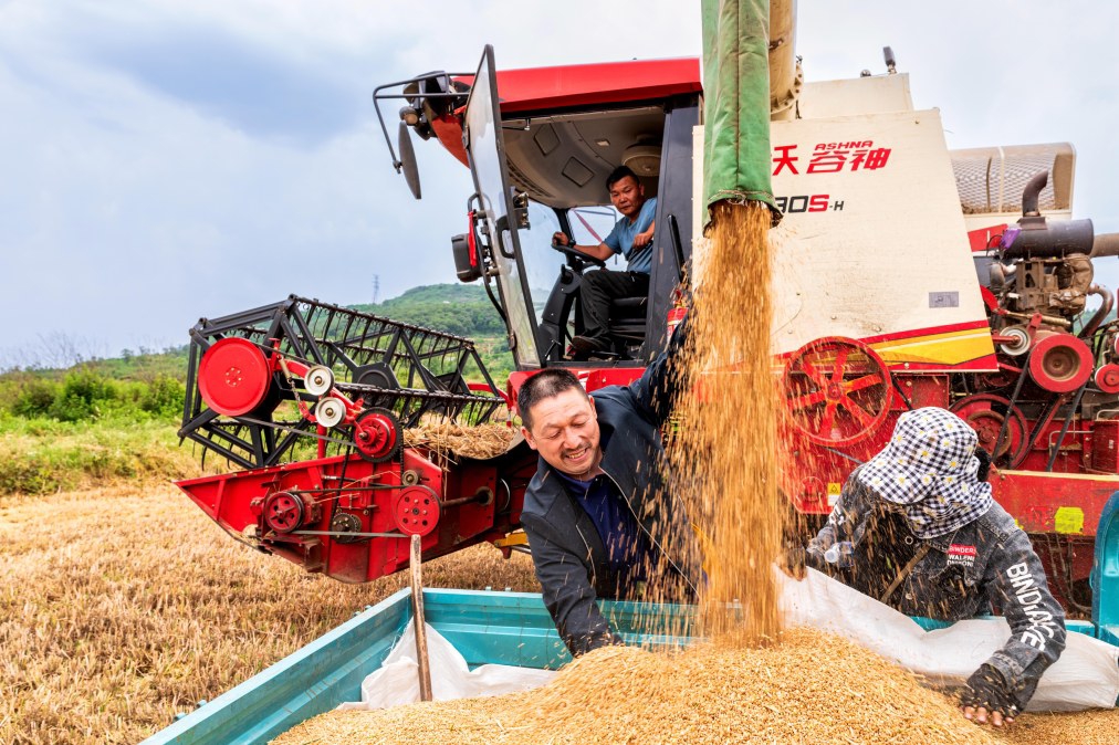 過(guò)去,播種、收獲、晾曬,都是靠農(nóng)民面朝黃土背朝天辛苦勞作。如今,每天不斷刷新的麥?zhǔn)者M(jìn)度背后,是各式農(nóng)機(jī)在大展身手。大型收割機(jī)馬力大、效率高,一天能收上百畝地;履帶式收割機(jī)更靈活,地塊小、有積水、濕度大等情況,都能派上大用場(chǎng);智能收割機(jī)不僅降低小麥拋撒率和破損率,還能讓籽粒清潔度達(dá)到高品質(zhì)……在一塊塊麥田里,各類農(nóng)機(jī)“大展身手”,為顆粒歸倉(cāng)提供堅(jiān)實(shí)支撐。