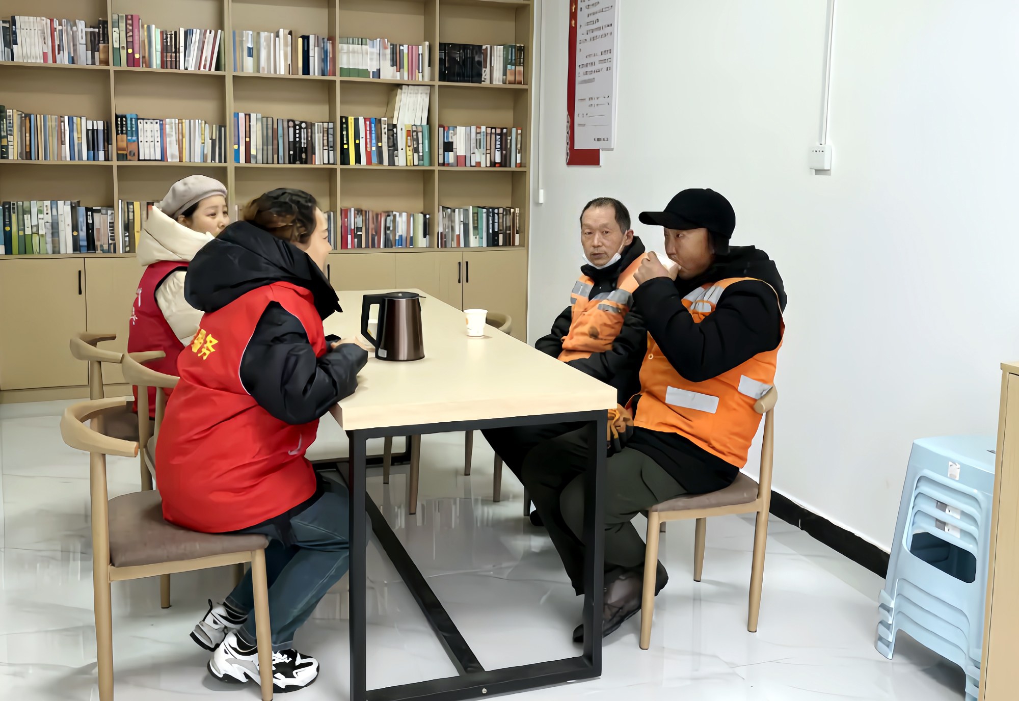 雖然室外寒氣襲人,但遍布城區(qū)的“愛(ài)心驛站”里卻暖意融融?!皭?ài)心驛站”內(nèi)開著空調(diào),有沙發(fā)、飲水機(jī)、充電器、簡(jiǎn)易書架和醫(yī)藥箱?!拔以诟浇ぷ?年了,天冷時(shí),我忙完就會(huì)到這里休息、取暖?!币晃唤旭T祥霞的環(huán)衛(wèi)工說(shuō)。在市區(qū)華佗路“愛(ài)心驛站”,記者看到幾位城管隊(duì)員和環(huán)衛(wèi)工在這里休息、取暖,他們有說(shuō)有笑,其樂(lè)融融。