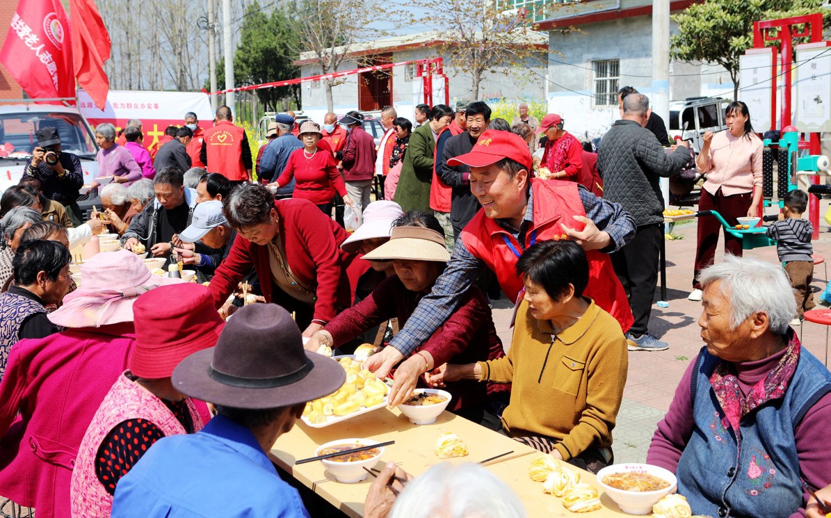 當日9時許,文化廣場上早已暖意融融。接到通知的老人三五成群,步履緩緩匯聚而來,臉上滿是期待。小彩鳳曲劇團的志愿者登臺獻藝,婉轉(zhuǎn)悠揚的傳統(tǒng)唱腔縈繞耳畔,皆是老人耳熟能詳?shù)慕?jīng)典曲目,每一段唱罷都會引來陣陣掌聲與喝彩;義剪區(qū),3位志愿者凝神細致,為30余名老人修剪發(fā)絲,褪去滄桑;磨刀攤前,銹跡斑斑的刀具在巧手下重煥锃亮光澤;義診區(qū),醫(yī)生耐心為老人測量血壓,問診把脈,細致講解養(yǎng)生知識,點滴關(guān)懷溫暖人心?!皭坌奈绮痛笈褴嚒迸裕辶恢驹刚叻止f(xié)作,切肉、洗菜、炸豆腐,忙碌的身影勾勒出最動人的春日圖景。