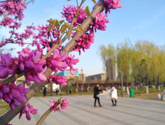 本報(bào)訊 (記者 陳晨 文/圖) 3月24日,市區(qū)春秋廣場北側(cè)的幾株桃花開了(如圖)。它們芬芳浪漫、嫵媚艷麗,如一片片紅霞,一簇簇地綻放在枝頭,成為廣場上的春日盛景。據(jù)了解,桃花作為春季比較常見的觀賞花類,在許昌市區(qū)種植了不少,且以碧桃居多。如今,它們已經(jīng)綻放,愛花的市民不要錯(cuò)過。 說起桃花,相信不少人會想起唐伯虎的詩:“桃花塢里桃花庵,桃花庵里桃花仙。桃花仙人種桃樹,又摘桃花換酒錢?!贝禾斓奶一偸菐е舳旱囊馕?,粉白相擁地在枝頭喧鬧。在這個(gè)如詩如畫的春季,大家不妨效仿唐伯虎,也做一回桃花庵里的“仙人”。 花期:3月末至4月下旬 推薦地:春秋廣場北側(cè)、清潩河游園(前進(jìn)橋南側(cè))、勞動路(建安大道至八一路段)、魏文路與蓮城大道交叉口北側(cè)路西