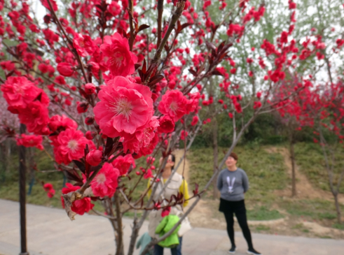 大紅碧桃花開(kāi)艷 美麗景色惹人醉