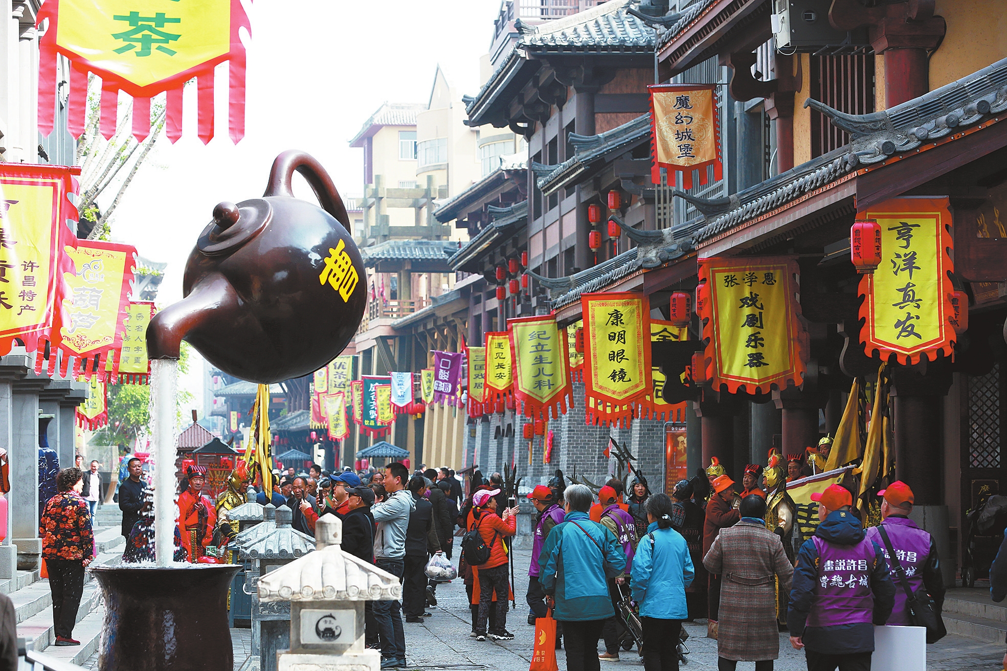 第十三屆三國(guó)文化旅游周期間,“好戲連臺(tái)”惠民活動(dòng)精彩上演,《倒霉大叔的婚事》《灞陵橋》《曹操與藍(lán)鶯兒》等劇目在許都大劇院陸續(xù)上演。與此同時(shí),4月11日至12日,省歌舞劇院綜藝節(jié)目在北海公園演出。在春秋樓景區(qū)、灞陵橋景區(qū),我市舉行“戲說(shuō)三國(guó)”情景劇演出,節(jié)選“關(guān)公迎曹”“竹詩(shī)明志”“灞陵挑袍”等歷史場(chǎng)景,生動(dòng)再現(xiàn)關(guān)羽在許昌時(shí)發(fā)生的歷史故事,讓游客更直觀地感受三國(guó)文化魅力。4月12日至14日,大型漢服走秀、千人五禽戲展演和第三屆廣場(chǎng)舞大賽等活動(dòng)在許都公園舉行,展示人民群眾健康向上的生活風(fēng)尚。4月10日至5月4日,曹魏華章大型燈光秀在曹魏古城南城門舉行,傳統(tǒng)節(jié)目表演在南大街舉行,非遺文創(chuàng)集市展在魏源廣場(chǎng)舉行,豐富游客的體驗(yàn)感,提高游客的參與度。