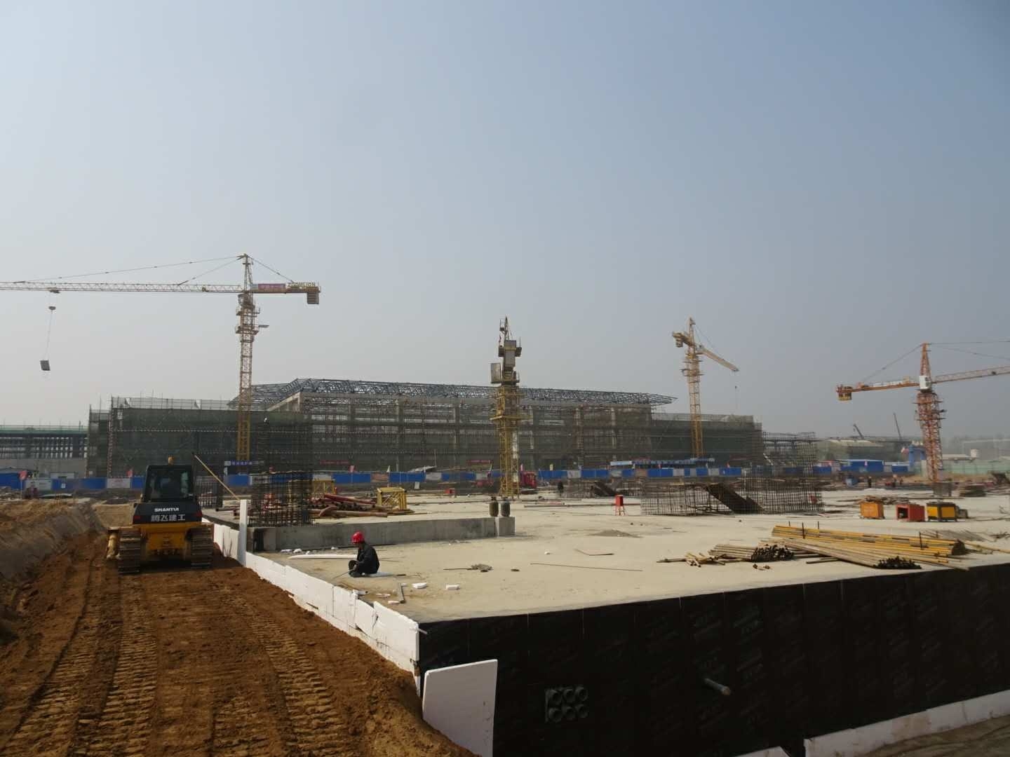 遠(yuǎn)遠(yuǎn)望去,藍(lán)天白云掩映之下的鄢陵南站巍峨大氣,一幢十幾米高的龐大建筑物周身布滿了腳手架和防護(hù)網(wǎng),淡黃色的塔吊揮舞著巨大的“手臂”,來回旋轉(zhuǎn)。在縱橫交錯(cuò)的鋼筋圍成的正方形區(qū)域內(nèi),幾十名工人正在綁扎鋼筋,施工場(chǎng)面蔚為壯觀。