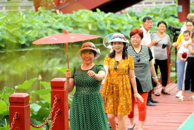 6月26日,市民在護城河望仙橋附近賞荷游玩。近期,市區(qū)護城河內(nèi)的荷花競相開放,散發(fā)出陣陣清香,盡顯都市荷塘的美景,吸引眾多市民和游客前來觀賞。