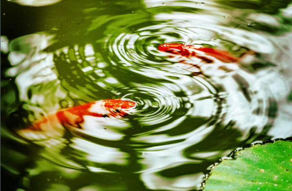 護(hù)城河中,兩條魚兒自由自在地在淺水中嬉戲,仿佛陶醉在荷香里,又仿佛游出了一個(gè)“太極”圖案。 晨報(bào)攝友 楊望祥 攝 ?