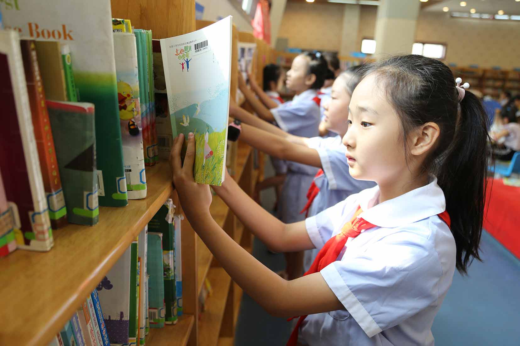連日來,我市持續(xù)高溫,清涼舒適的圖書館成為許多市民首選的“避暑勝地”。他們或看書或?qū)W習(xí),沉浸在書香中,在燥熱中覓得一處清涼。圖為近日在市圖書館結(jié)伴看書的“小書蟲”。