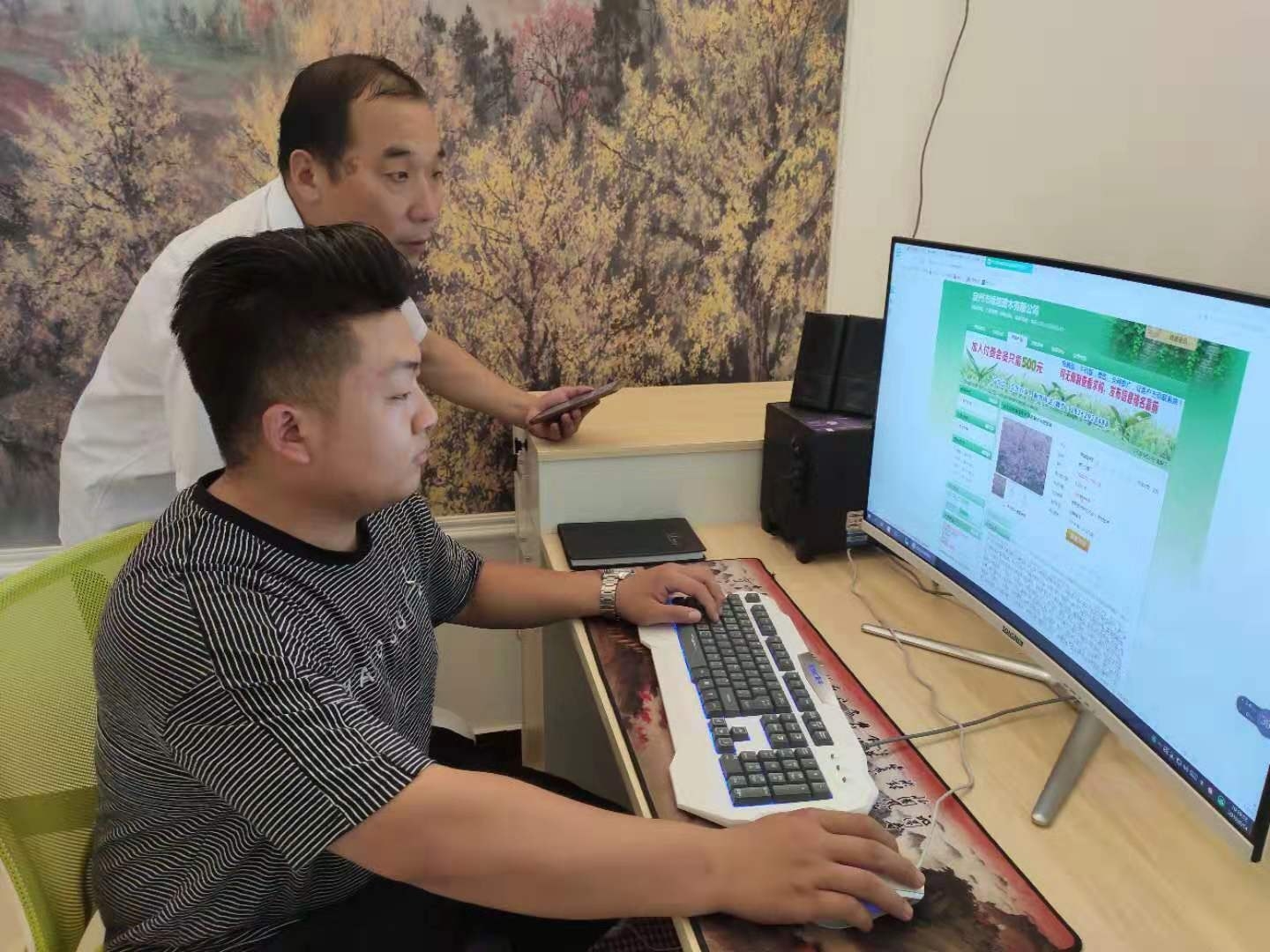 圖為武莊村花農(nóng)在網(wǎng)上洽談花木生意。 肖濤 攝
