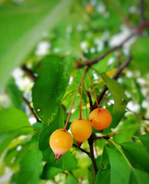 一片片紅葉掛著沉甸甸的露珠,樹上接滿了果子。山楂像一個(gè)個(gè)紅燈籠,給人一種喜慶的感覺。