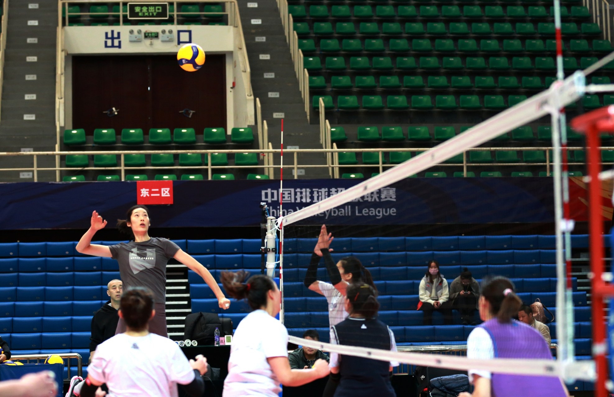 11月18日,天津渤海銀行女排在許昌職業(yè)技術學院體育館訓練,圖為著名排球明星朱婷在訓練中扣球。天津女排是我國一只排壇勁旅,九次獲得全國排球聯賽冠軍。本賽季,天津女排的陣容非常強大,朱婷、李盈瑩、姚笛以及王媛媛四大國手壓陣,再加上外援胡克爾,她們的陣容實力相當強大。她們本賽季的目標就是聯賽冠軍。11月19日19時,河南銀鴿投資女排將坐鎮(zhèn)主場,迎接天津渤海銀行女排的挑戰(zhàn)。