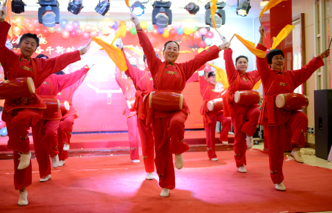 1月18日,演員們在表演節(jié)目《開門紅》。當(dāng)日,由中共魏都區(qū)委組織部主辦、魏都區(qū)新興街道辦事處黨工委等單位聯(lián)合承辦的社區(qū)網(wǎng)絡(luò)春晚拉開序幕。大家載歌載舞,喜迎春節(jié)的到來。記者 牛志勇 攝 ?