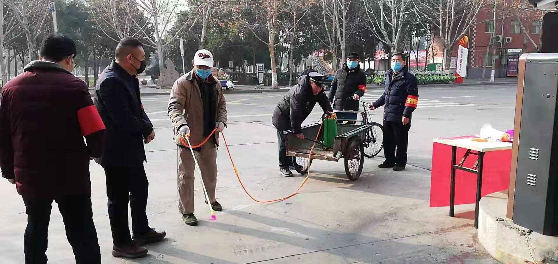 給小區(qū)院內(nèi)消毒。