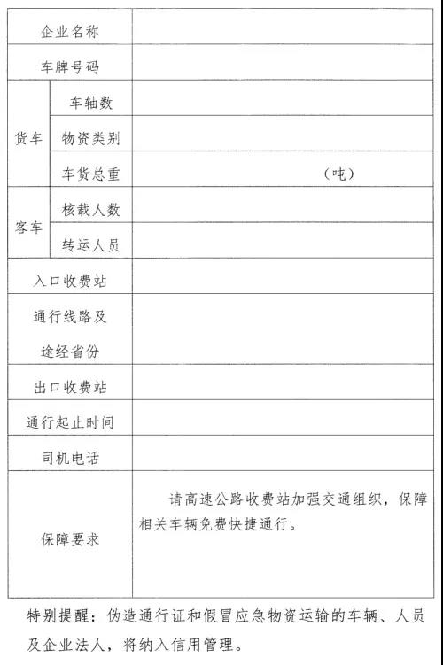 關(guān)于辦理使用應(yīng)急運輸通行證工作的通告