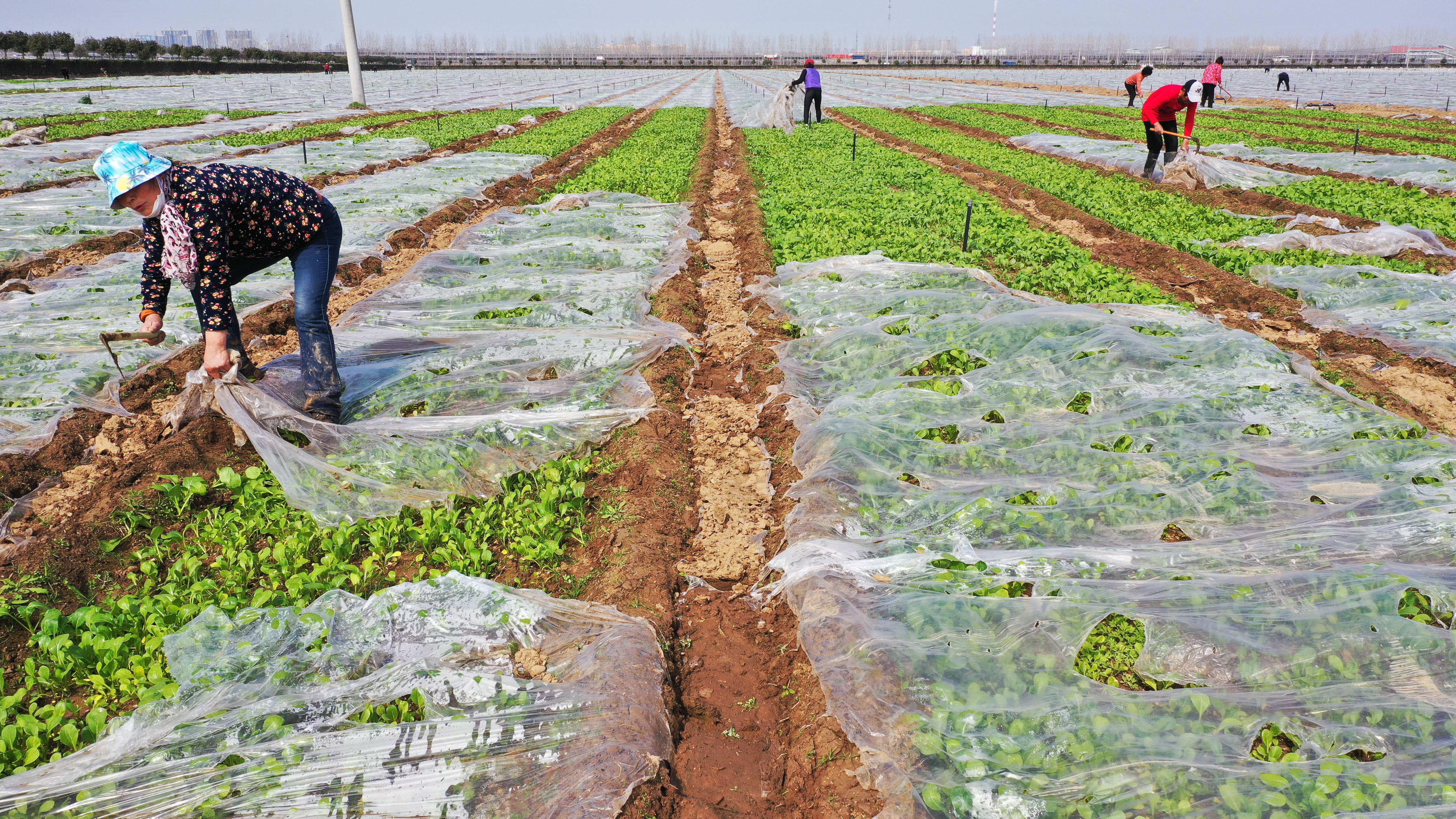 3月4日,建安區(qū)將官池鎮(zhèn)的河南天和農(nóng)業(yè)股份有限公司供港蔬菜基地內(nèi),工人在為早熟蔬菜去除薄膜。春耕時(shí)節(jié),我市積極引導(dǎo)群眾抓住農(nóng)時(shí)進(jìn)行春耕春播,田間地頭一片繁忙的景象。 記者 牛書培 攝