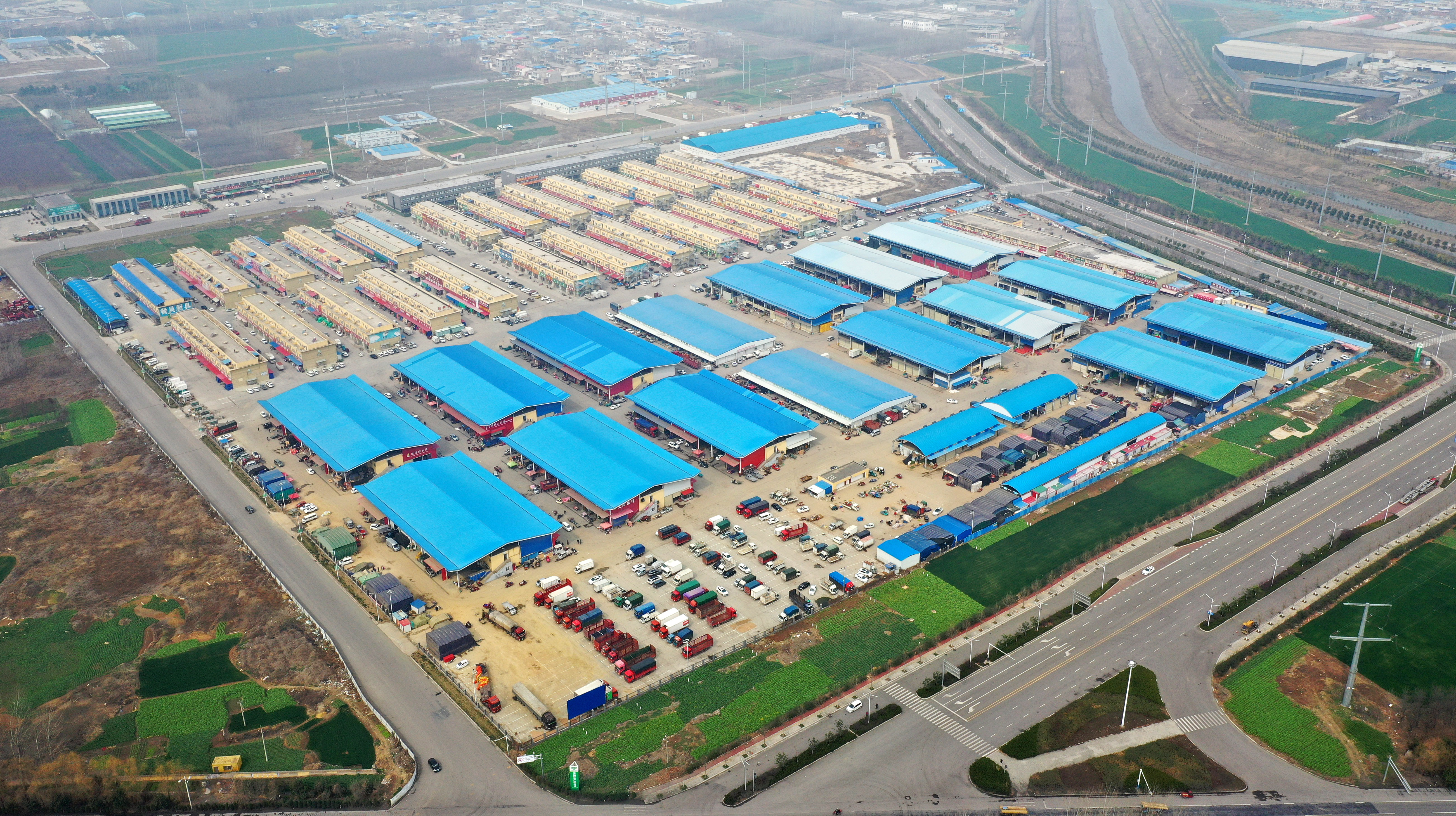 3月5日航拍的位于東城區(qū)的中原國際農產品物流港一片繁忙。新冠肺炎疫情發(fā)生以來,該物流港在做好防控工作的前提下,積極幫助電商、物流企業(yè)解決招工、運輸、銷售等方面的實際問題。目前,該物流港已全面復工。 記者 牛書培 攝