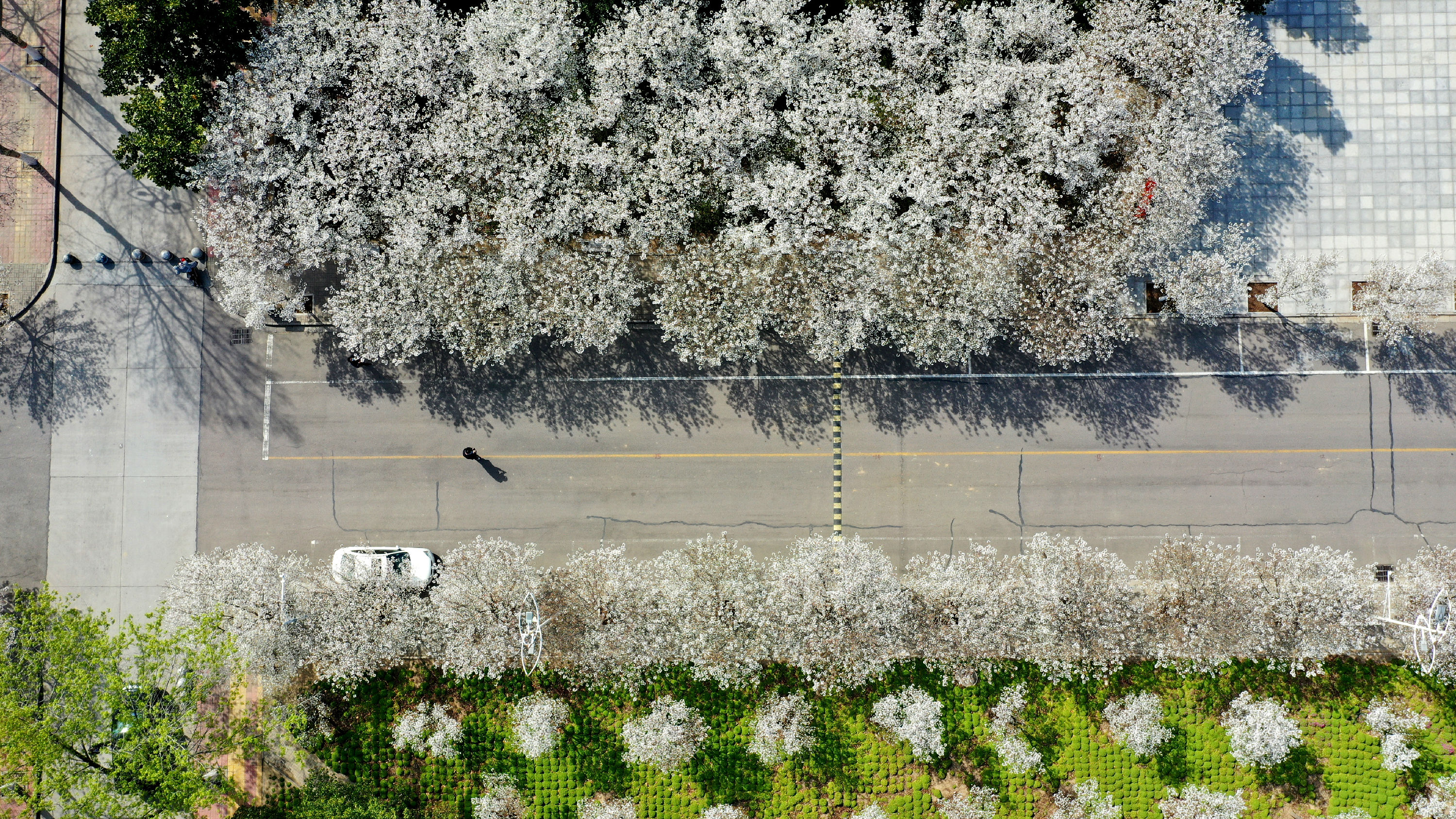 無人機(jī)飛過“櫻花大道”,記錄下繁花似錦的美景