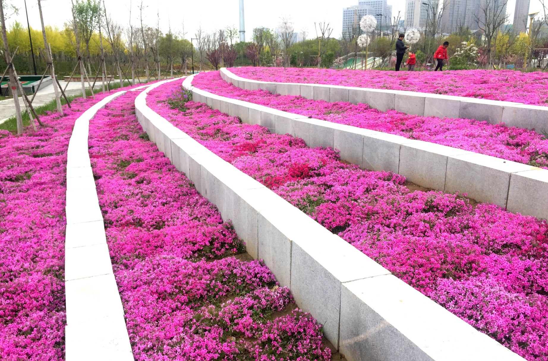 3月31日,市區(qū)中央公園內(nèi),市民在盛開(kāi)的針葉天藍(lán)繡球旁游玩。針葉天藍(lán)繡球的花瓣形似櫻花,顏色有濃粉色、淡粉色等,絢麗多彩。如今,中央公園內(nèi)春色正好,每天都會(huì)吸引大量市民前來(lái)游玩。 記者 牛志勇 攝