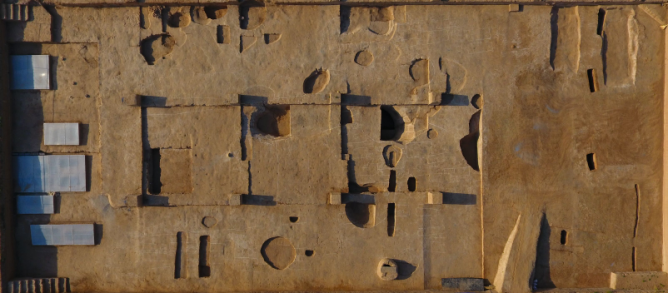 這是雙槐樹遺址的夯土基址(2019年8月27日無人機(jī)拍攝)。新華每日電訊記者李安攝