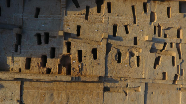 地裂縫遺跡發(fā)現(xiàn)于遺址內(nèi)壕和中壕東南部解剖溝內(nèi),呈東西條狀,錯(cuò)亂交叉,縫內(nèi)有淤積黃土,還有明顯的地層錯(cuò)位現(xiàn)象。北京大學(xué)相關(guān)專家現(xiàn)場確認(rèn),認(rèn)為可能是地震引發(fā)的裂縫,且震級(jí)在6.0級(jí)以上。