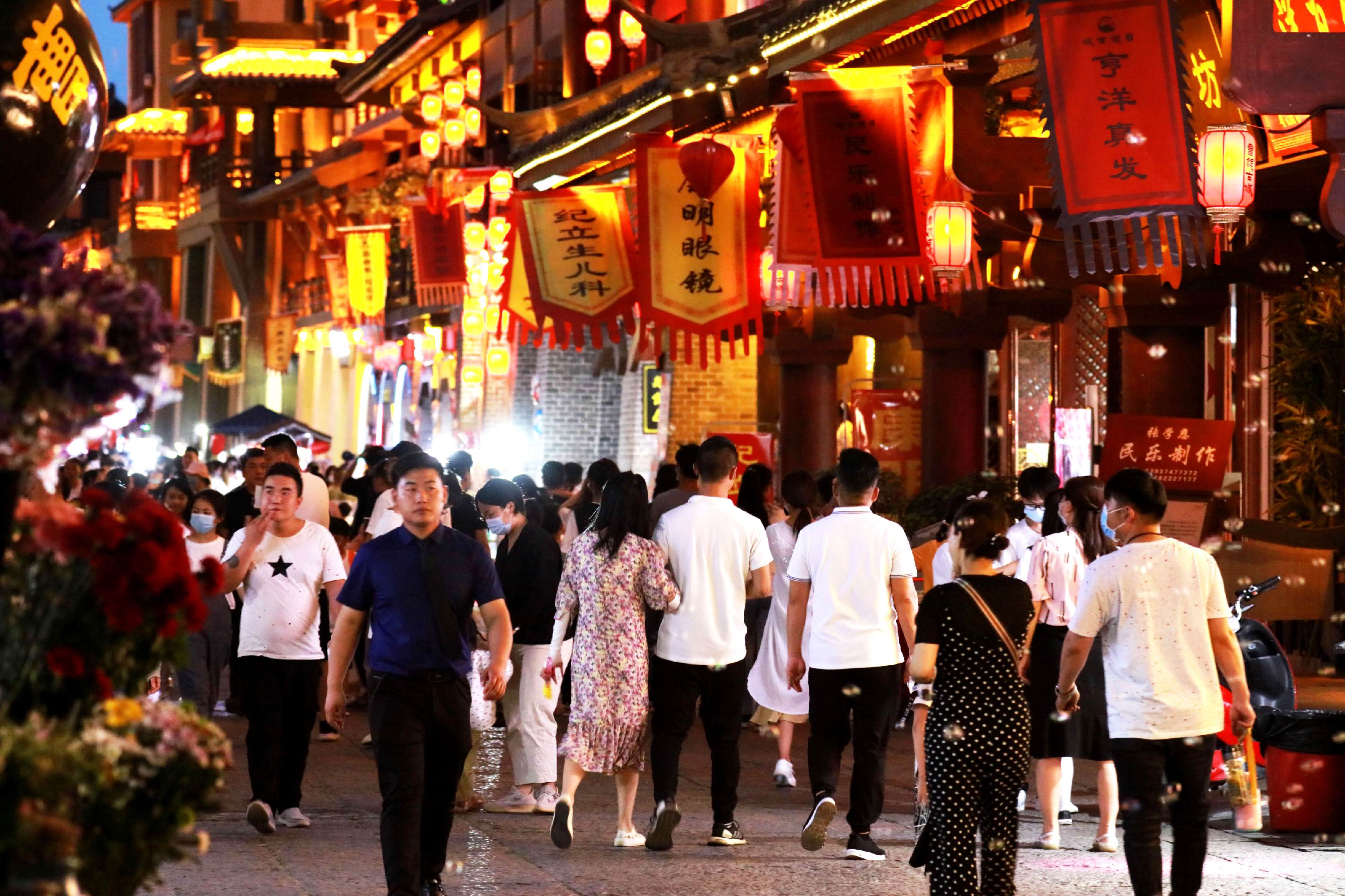 5月17日傍晚,游人在曹魏古城街區(qū)內(nèi)行走。近日,曹魏古城人流不斷增加,不少商戶逐步延長經(jīng)營時間、豐富夜間消費(fèi)產(chǎn)品,助力蓮城夜經(jīng)濟(jì)持續(xù)回暖復(fù)蘇。 記者 牛書培 攝