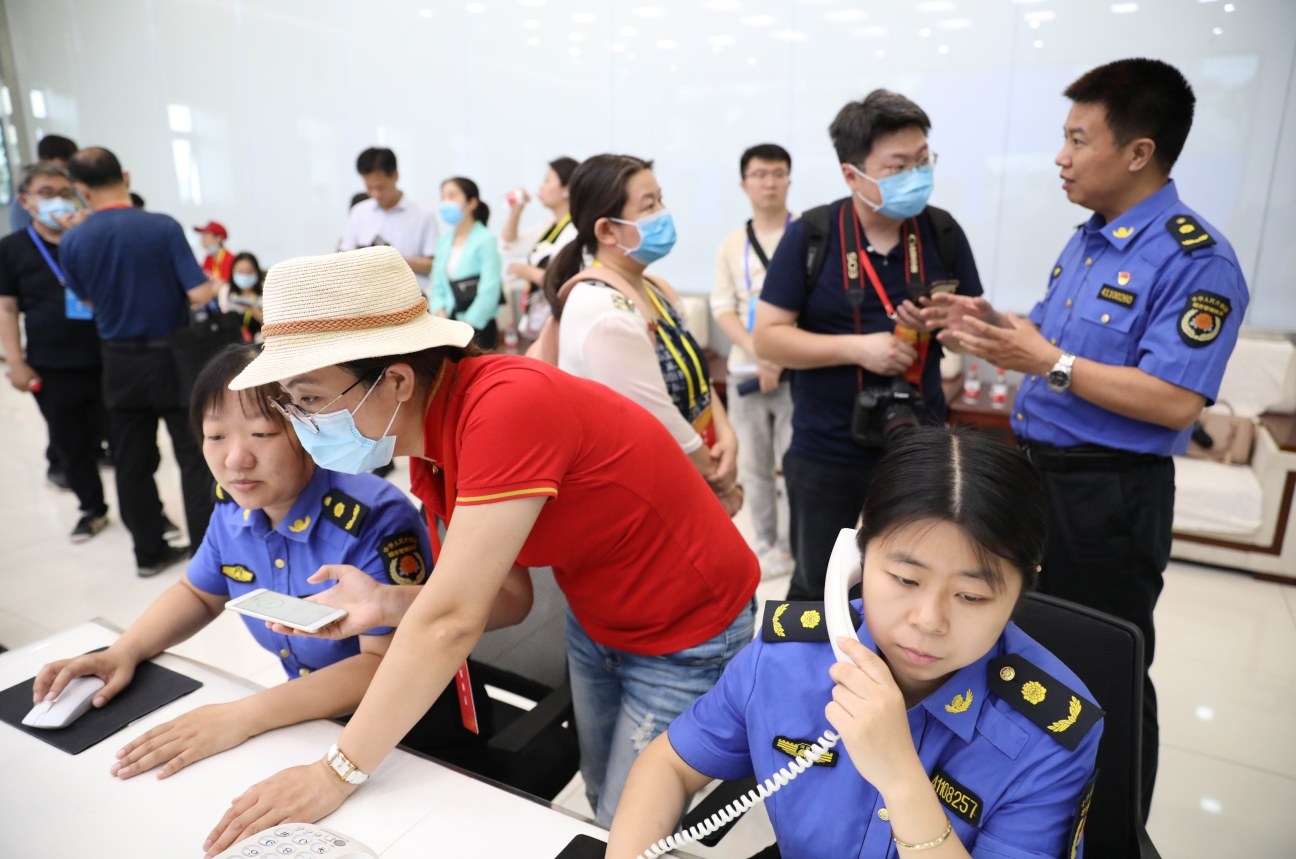 6月11日,媒體采訪團在市數(shù)字化城市管理中心對智能化城市運營管理進行采訪。 本報記者 喬利峰 攝