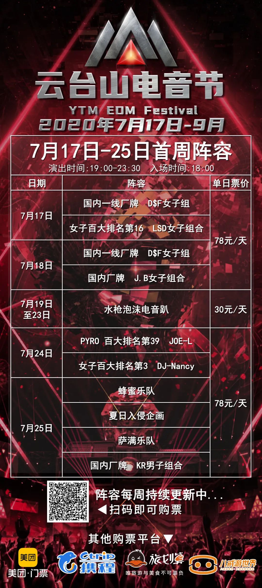 1、云臺山電音節(jié)門票為單獨售票,只參加電音節(jié)無需購買景區(qū)門票;