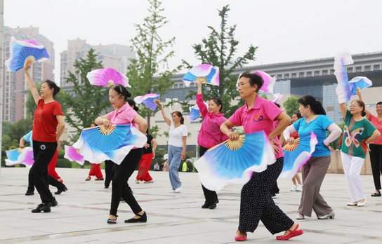 7月29日,市民群眾在市區(qū)許都公園精心排練健身舞蹈。 寇旭靜 攝