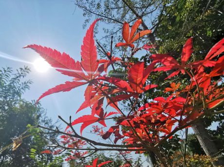霜降節(jié)氣已過(guò),市區(qū)種植的一些彩葉樹種陸續(xù)進(jìn)入最佳觀賞期。護(hù)城河畔,紅楓的葉子紅彤彤的,乍一看猶如紅色的花;在許都路和百花北路交叉口東北側(cè),生長(zhǎng)著幾十棵烏桕,在藍(lán)天、白云的映襯下,紅色的葉子猶如燦爛的云霞,非常好看。記者 毛迎 攝