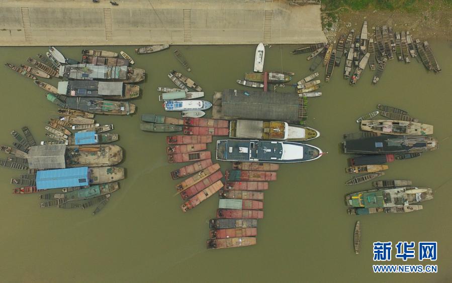 在湖南常德漢壽縣蔣家嘴鎮(zhèn),待回收的鐵漁船??吭诙赐ズ叄?019年12月17日攝,無(wú)人機(jī)照片)。2020年1月1日零時(shí)起,長(zhǎng)江流域332個(gè)自然保護(hù)區(qū)和水產(chǎn)種質(zhì)資源保護(hù)區(qū)全面禁止生產(chǎn)性捕撈。新華社記者 薛宇舸 攝