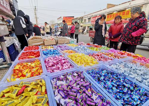 2月8日,建安區(qū)尚集鎮(zhèn)集貿(mào)市場(chǎng)一派繁忙景象。春節(jié)臨近,人們忙著采購(gòu)肉食、蔬菜、糖果、年飾用品等各類(lèi)年貨,歡歡喜喜迎新年。記者 喬利峰 攝