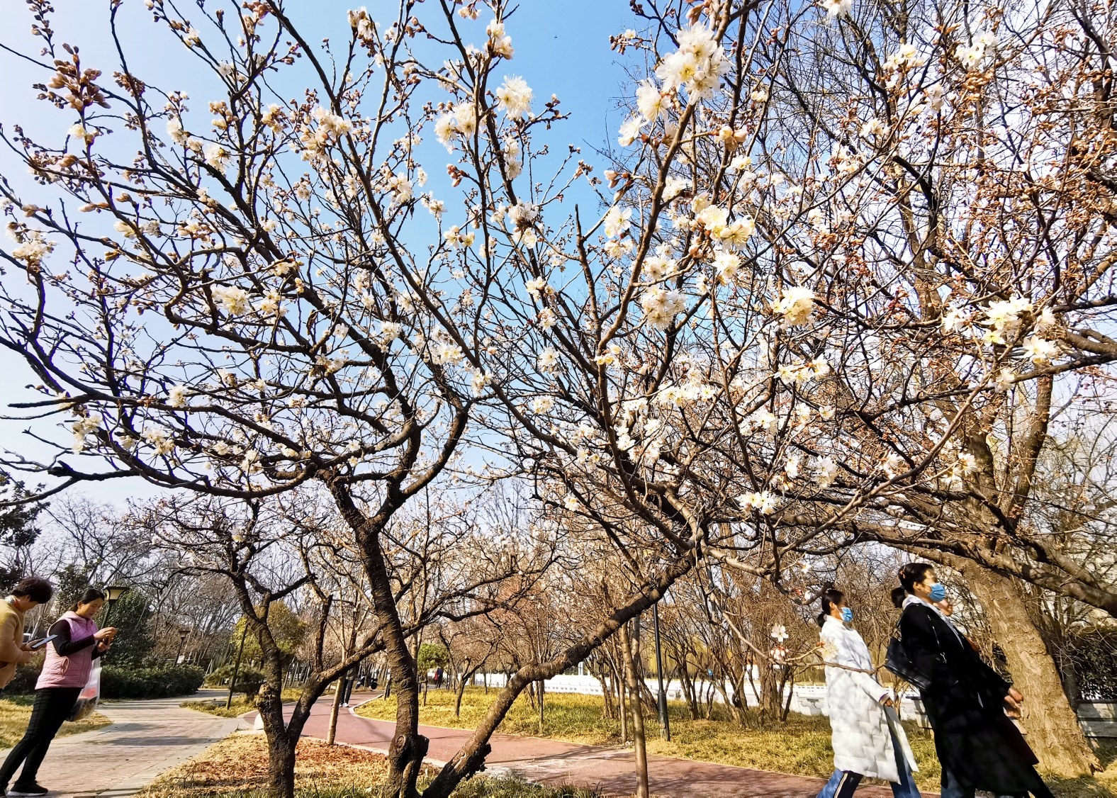 2月20日,市區(qū)清潩河畔櫻花盛開,吸引不少市民前來賞花游玩。 記者 喬利峰 攝
