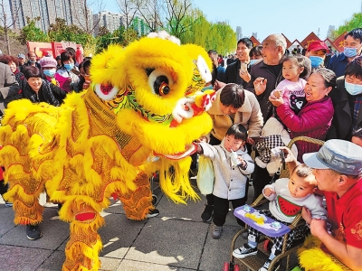 滎陽(yáng)市“新時(shí)代文明實(shí)踐推動(dòng)周”活動(dòng)集中啟動(dòng)儀式現(xiàn)場(chǎng)的獅舞表演,吸引群眾駐足觀看。楊正華攝