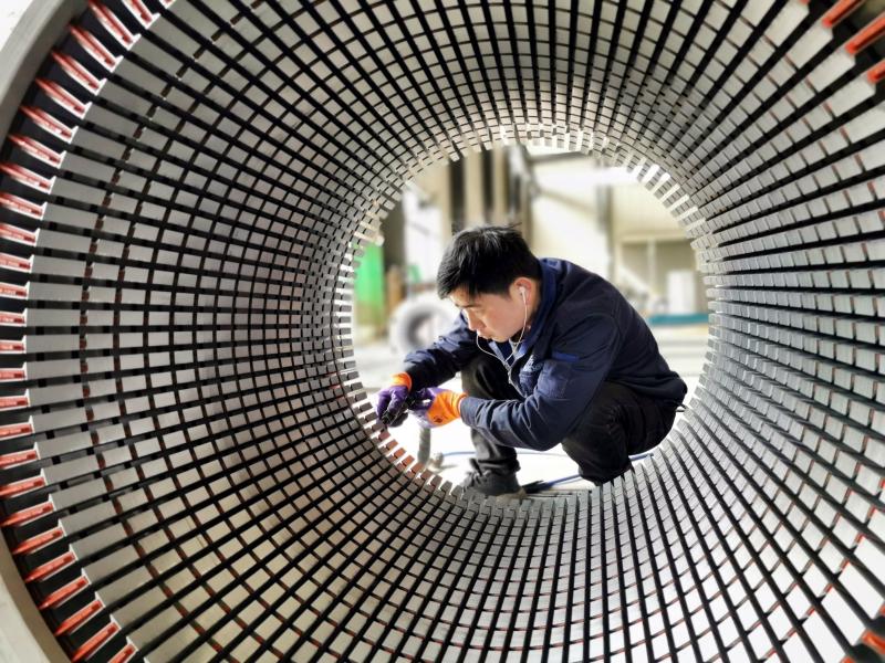 4月6日,位于長葛市產(chǎn)業(yè)集聚區(qū)的永榮動(dòng)力科技有限公司,工人加緊生產(chǎn)。該公司生產(chǎn)的電機(jī)定子、轉(zhuǎn)子和鐵芯是電機(jī)的“心臟”,可廣泛應(yīng)用于軌道交通、新能源汽車等領(lǐng)域,出口歐美等10多個(gè)國家。