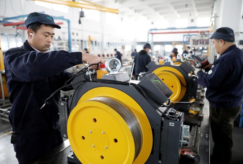 4月13日,在位于國家許昌經(jīng)濟技術開發(fā)區(qū)的迅達(許昌)驅動技術有限公司,員工正在生產(chǎn)電梯曳引機。該公司堅持自主創(chuàng)新,研發(fā)生產(chǎn)的自動扶梯和自動人行道驅動主機及電梯零部件產(chǎn)銷量呈現(xiàn)持續(xù)穩(wěn)步的增長態(tài)勢。