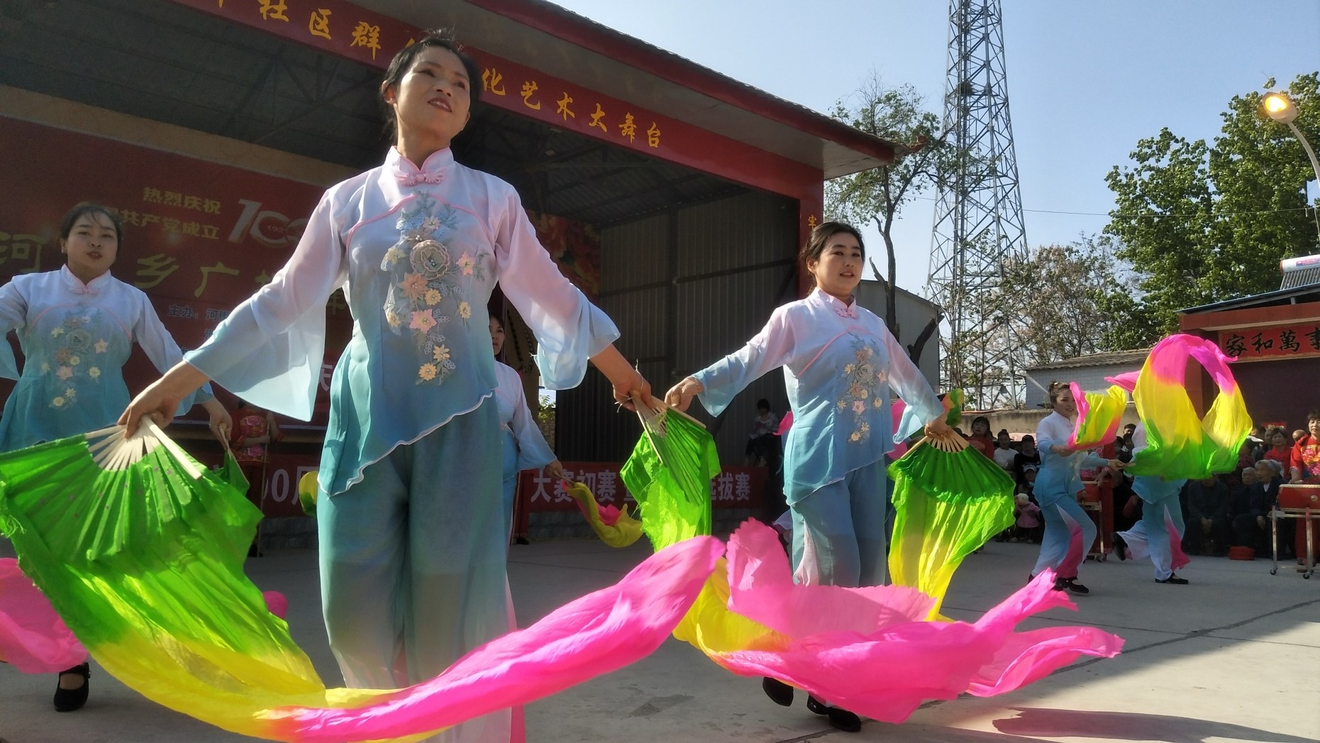 4月19日下午,舞蹈隊員在建安區(qū)河街鄉(xiāng)北岸村文化廣場上表演。當日,“慶祝建黨100周年”建安區(qū)廣場舞大賽初賽暨河街鄉(xiāng)選拔賽舉行,10個廣場舞團隊表演了《紅心永跟黨旗走》《天美地美中國美》《中國吉祥年》等精彩節(jié)目,營造了“黨的盛典、人民的節(jié)日”濃厚社會氛圍,贏得群眾的熱烈歡迎和廣泛贊譽。 武鵬亮 攝