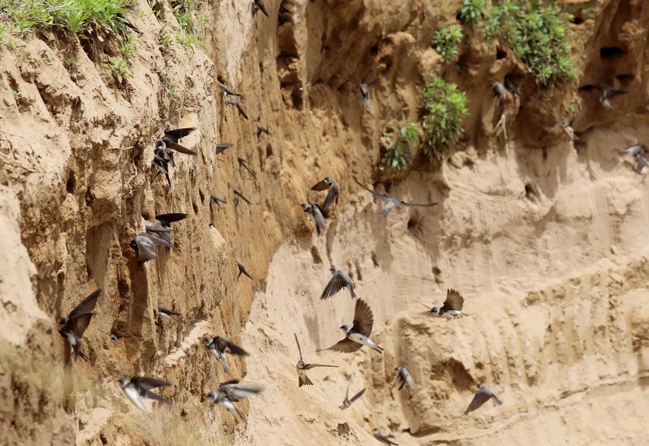 5月7日,建安區(qū)榆林鄉(xiāng)劉王寨村崖沙燕的棲息地異常熱鬧。崖沙燕,又名灰沙燕,喜歡成群結(jié)隊(duì)在水源附近的沙土崖壁上筑巢,它是捕食蚊蠅等小飛蟲的益鳥,是我國有益、有重要經(jīng)濟(jì)價(jià)值、有科研價(jià)值的“三有”保護(hù)動(dòng)物。 本報(bào)記者 喬利峰 攝