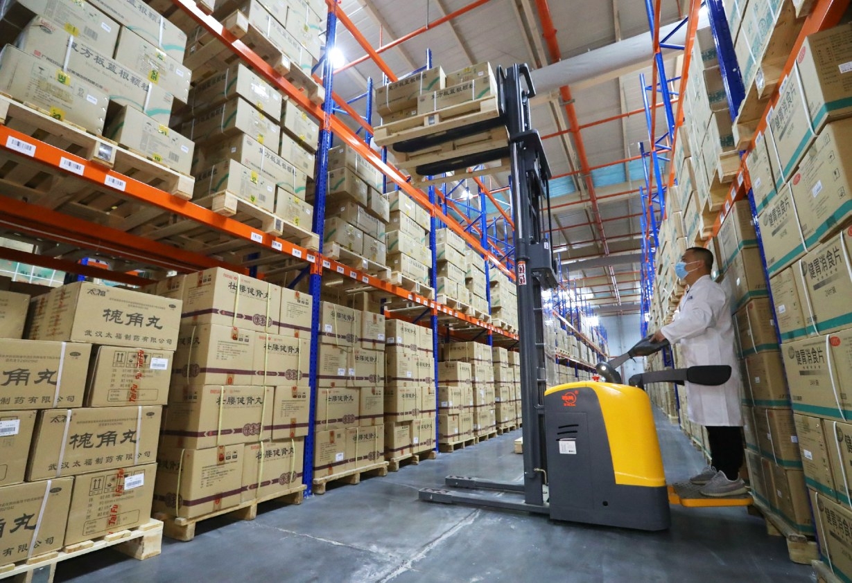 5月24日,工作人員在河南康健醫(yī)藥物流項(xiàng)目內(nèi)調(diào)運(yùn)藥品。 本報(bào)記者 牛書培 攝