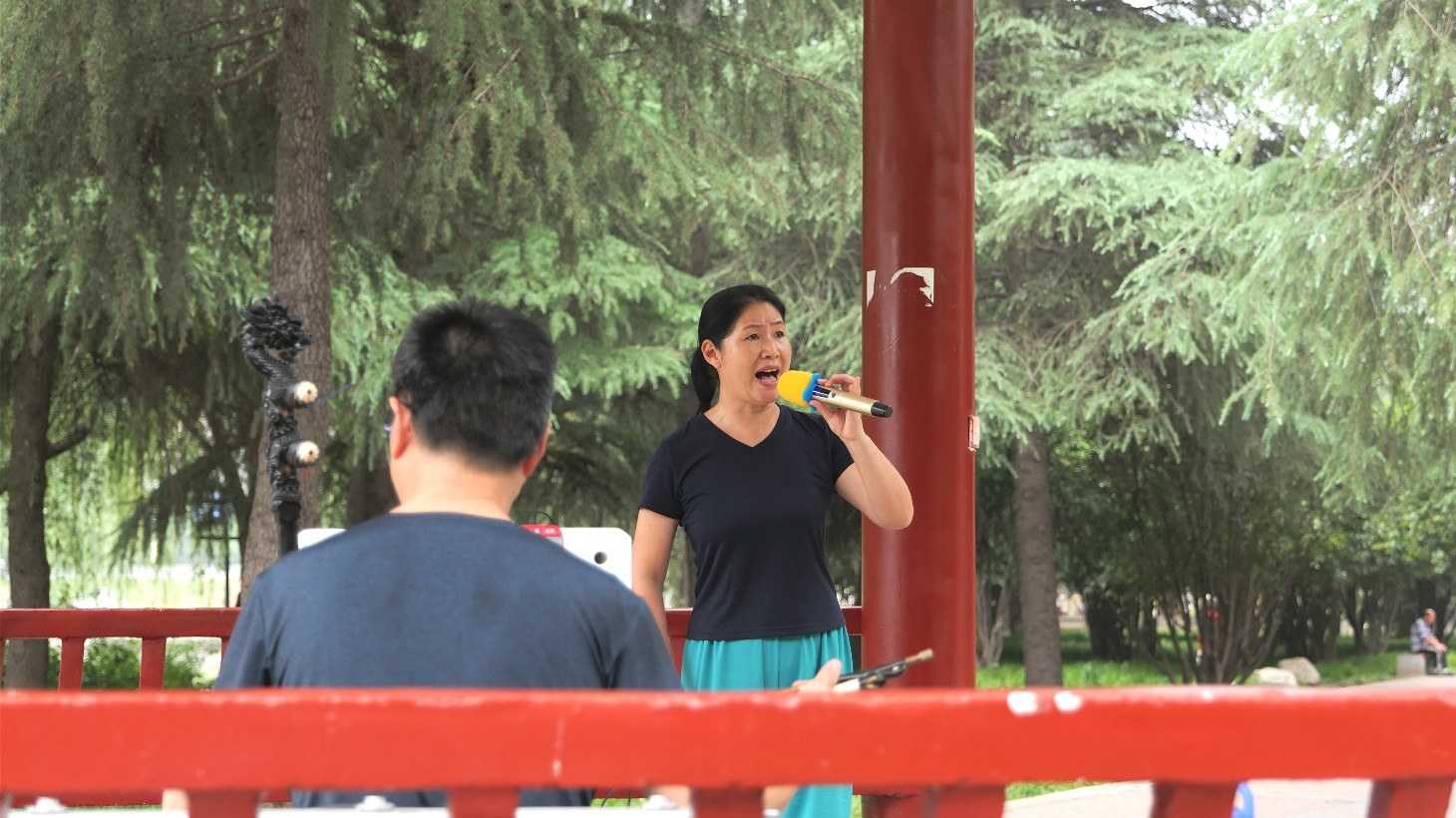 “郭大姐,來一段!”戲友對(duì)她喊道。