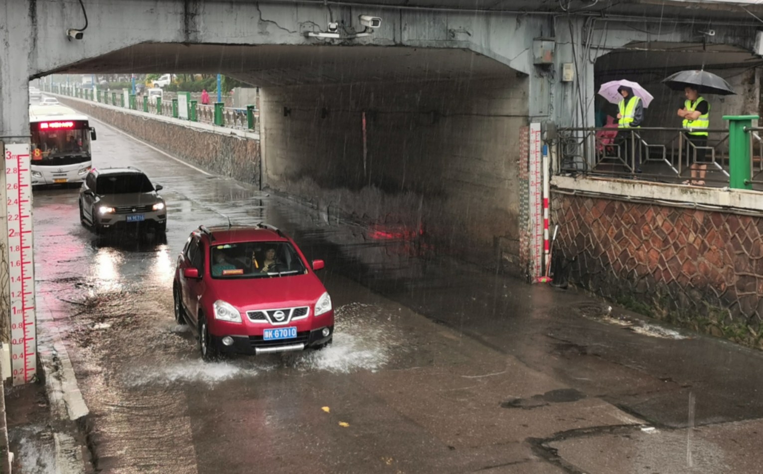 7月21日,防汛工作人員在市區(qū)中立交橋密切關(guān)注積水情況。本報記者 喬利峰 攝