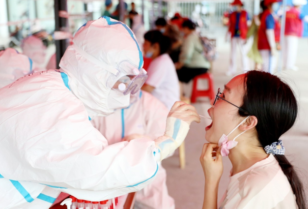 醫(yī)務(wù)人員為居民進(jìn)行核酸檢測(cè)采樣。記者 喬利峰 攝