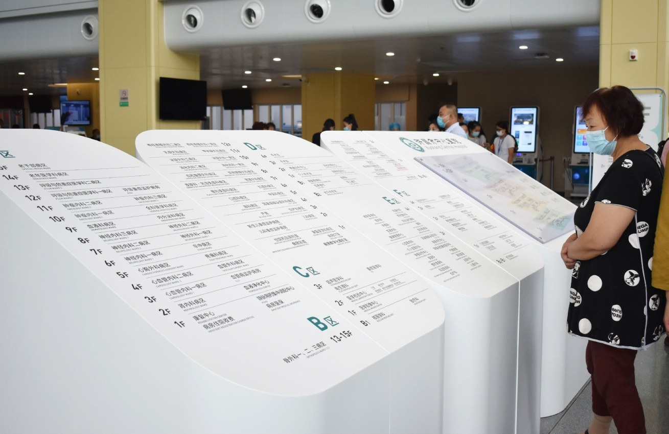 許昌市中心醫(yī)院鹿鳴湖院區(qū)門診大廳門口的分區(qū)樓層索引