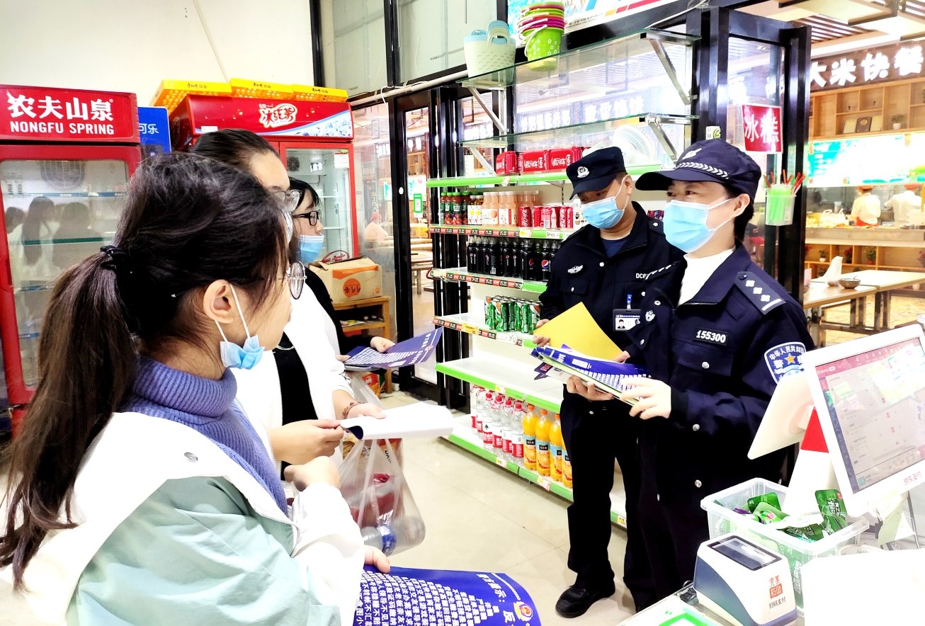 10月11日,市公安局東城分局民警走進(jìn)轄區(qū)內(nèi)商場、超市等人流量大的區(qū)域,開展防范電信詐騙宣傳活動(dòng)。民警向群眾發(fā)放宣傳頁,講解典型案例,進(jìn)一步增強(qiáng)了群眾的安全防范意識(shí),提高了群眾的識(shí)詐防騙能力。武威 攝