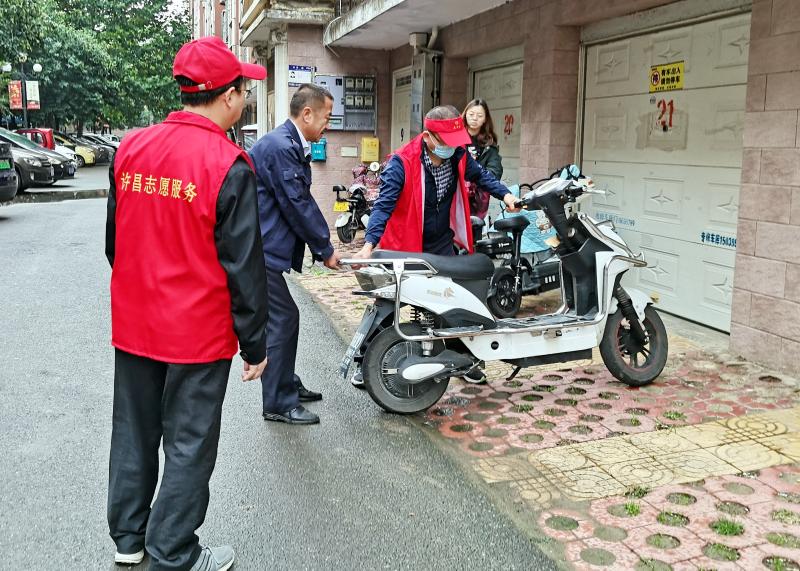 隨后,記者來到魏都區(qū)西大街道辦事處魏武社區(qū)的一個老庭院,看到社區(qū)黨支部書記李靜正帶領(lǐng)幾名工作人員清理樓道內(nèi)的小廣告和雜物,捆扎外露的電線,提醒居民及時給電動車安裝車牌,規(guī)劃電動車停車位,滿足居民停車需求。