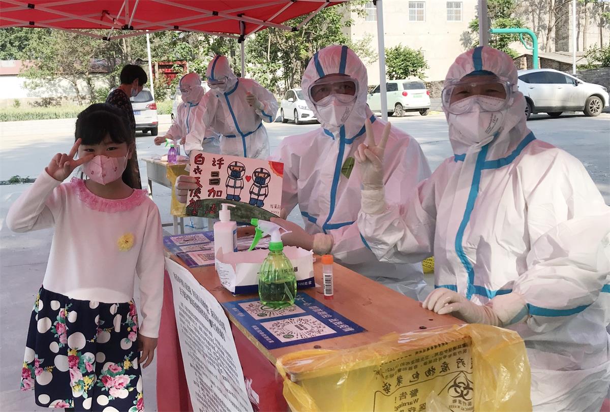 5月8日上午,許昌市建安醫(yī)院七里店社區(qū)衛(wèi)生服務(wù)中心的醫(yī)護(hù)人員在孫廟社區(qū)為全體居民做完核酸檢測后,該社區(qū)的小學(xué)生孫榮艷將一幅自己創(chuàng)作的蠟筆畫送給了醫(yī)護(hù)人員。 簽約攝影師 李保利 攝