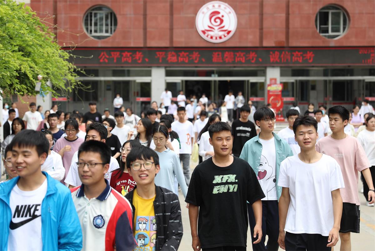 6月7日,許昌高中考點,學(xué)生考完第一場語文后輕松走出考場。當天,2023年全國高考正式開考。今年,我市有45208人參加高考,設(shè)市直、建安區(qū)、禹州市、長葛市、鄢陵縣、襄城縣6個考區(qū)38個考點1546個考場。 本報記者 喬利峰 攝